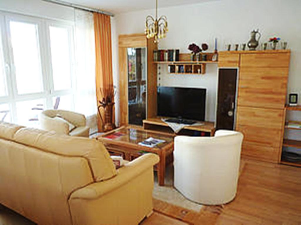 * Living/Dining room: dining table with attachable table, 6 dining chairs, cabinet, wall unit, 2 seat leather sofa, coffee table, armchair, flat screen TV Samsung 37”, Philips DVD Player, a dining area, cordless phone charging station, weather station, cable TV and broadband connection.