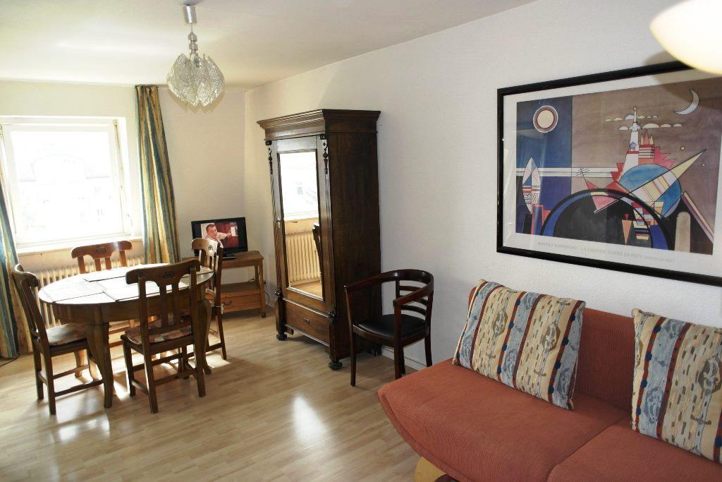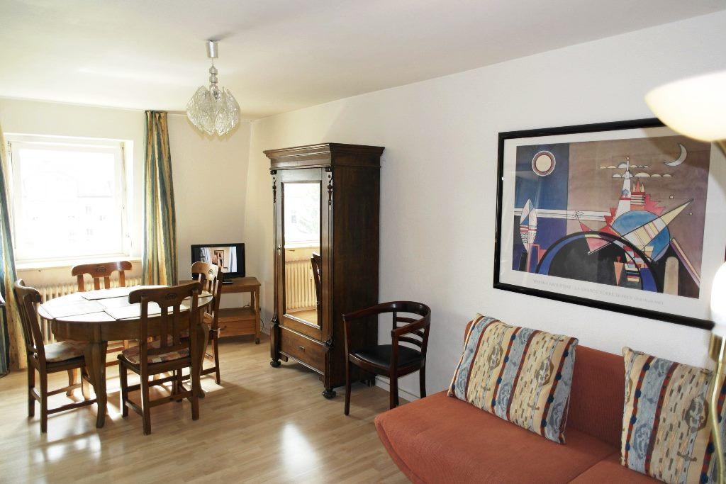 • Nicely furnished 2 bedroom apartment in a top location close to the Isar, directly at the U1 Candidplatz. Opposite of a Tengelmann. Living room and bedrooms are fully equipped with shelves, wardrobe, bed, etc. The kitchen has a window and provides all the necessary electrical appliances. There’s even a dining area with table and chairs. The bathroom has a shower and is modern and new. The apartment has an internet connection included in the rent.