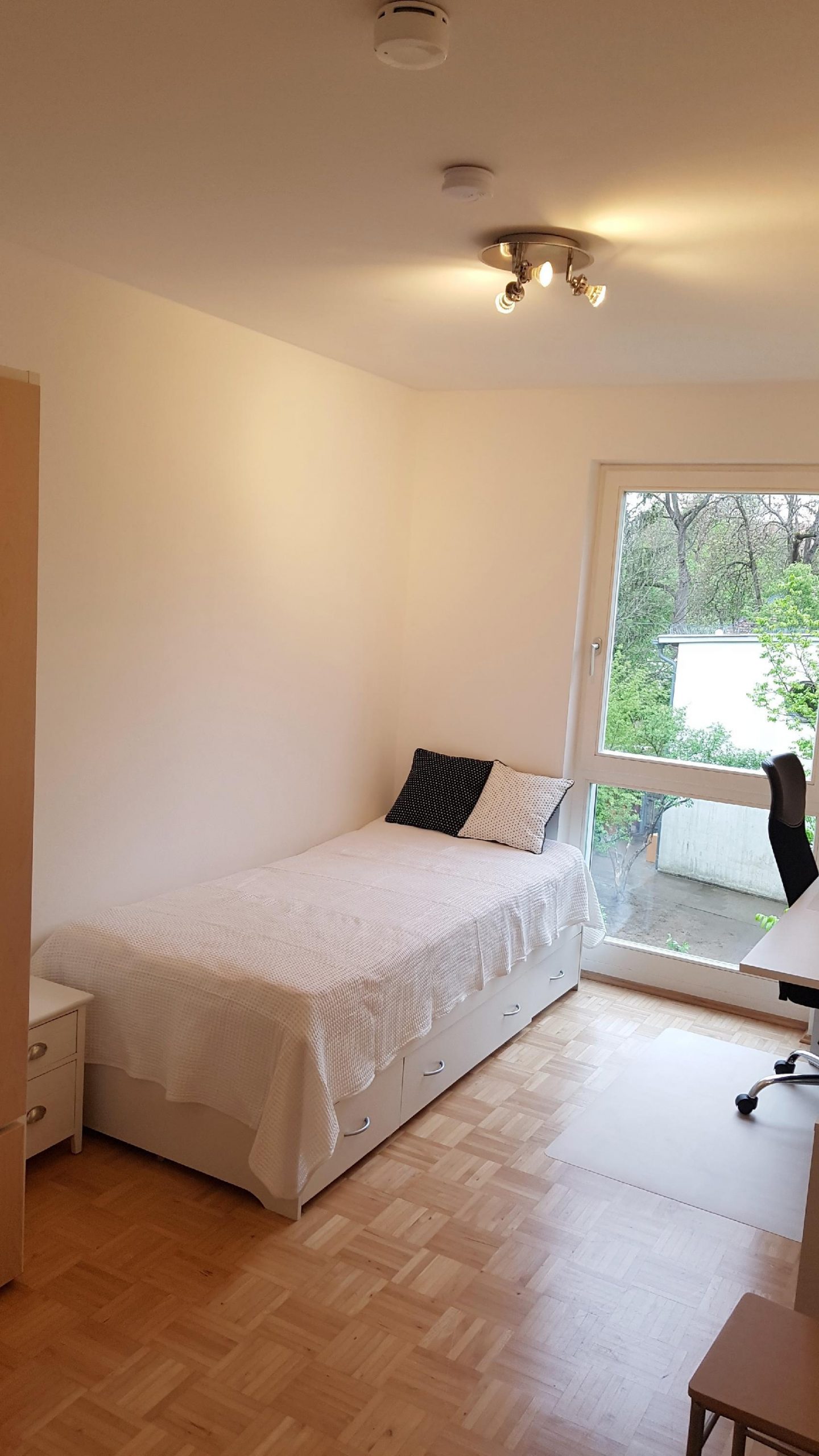 Close to the apartment you will find a bank, a playground, a kindergarten, an elementary school, and a lot of shopping possibilities, such as Rewe, Rossmann and Olympia Shopping Mall.
