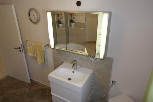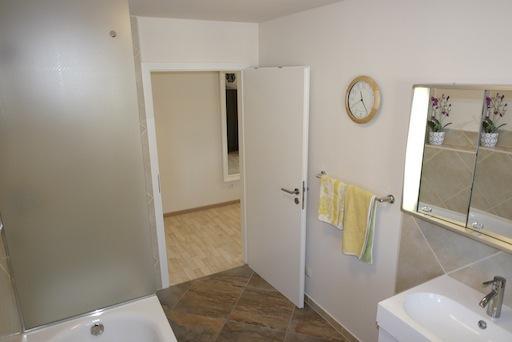 The bathroom has a bathtub and a shower. The flooring in the living and sleeping area is rug. The kitchen and bathrooms are tiled. The furniture are new, in a very good condition and have a modern line. The kitchen is well equipped. She has a very good fitted kitchen, windows, dishes, dishwasher, fridge-freezer, microwave, hob and an electric oven. Especially in the very bright and quiet apartment is the terrace overlooking the countryside. A washer and dryer are in the house, as well as a satellite TV, Samsung Smart Hub LED TV and a Blue Ray DVD player.- Level of Features: High Quality Interior
