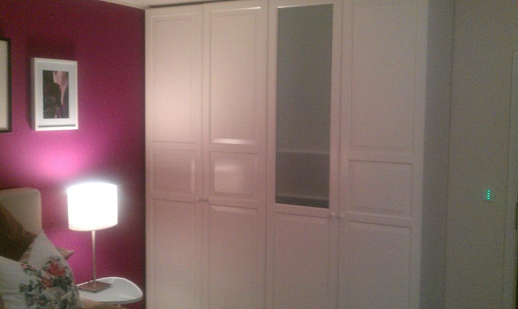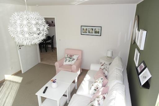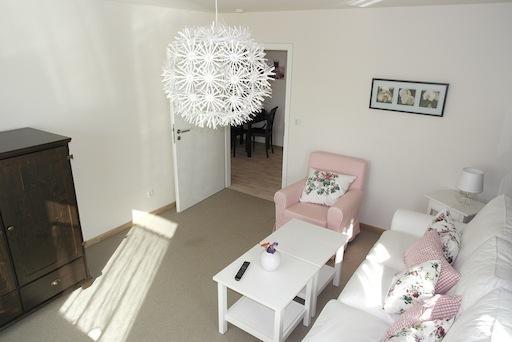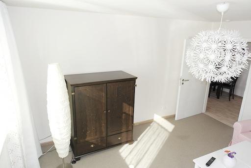 The following rooms are available: living room, bedroom, kitchen, pantry and bathroom. The bedroom has a double bed 1,80 m x 2,00 m and a closet, linen are included. There is an additional sofa bed. There is a dining table with 4 chairs, a desk, a wardrobe and shelves.