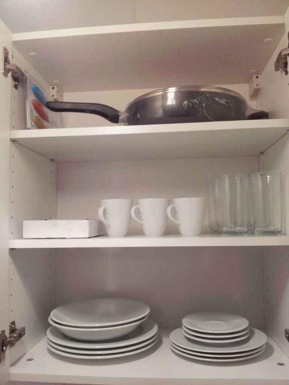 Wohnzimmer sehr hell mit großer Fensterfront, Sofa, Couchtisch, LCD TV, Internet. Esstisch mit Stühlen. Die Küche ist mit dem Herd mit Backofen, Cerankochfeld, Dunstabzug, Waschmaschine sowie ausreichend Koch- und Essgeschirr ausgestattet. Ein weiterer Arbeitsbereich vor der Küche steht zur Verfügung. Hier sind Kaffeemaschine, Wasserkocher, Toaster sowie Kühlschrank mit Gefrierfach vorhanden. Ein heller Fadenstore ersetzt die Eingangstüre zum Schlafzimmer, welches vom Wohnbereich getrennt ist. Der Schlafzimmer ist mit einem Doppelbett ausgestattet. Großer Kleiderschrank im Flur. Badezimmer mit Badewanne.