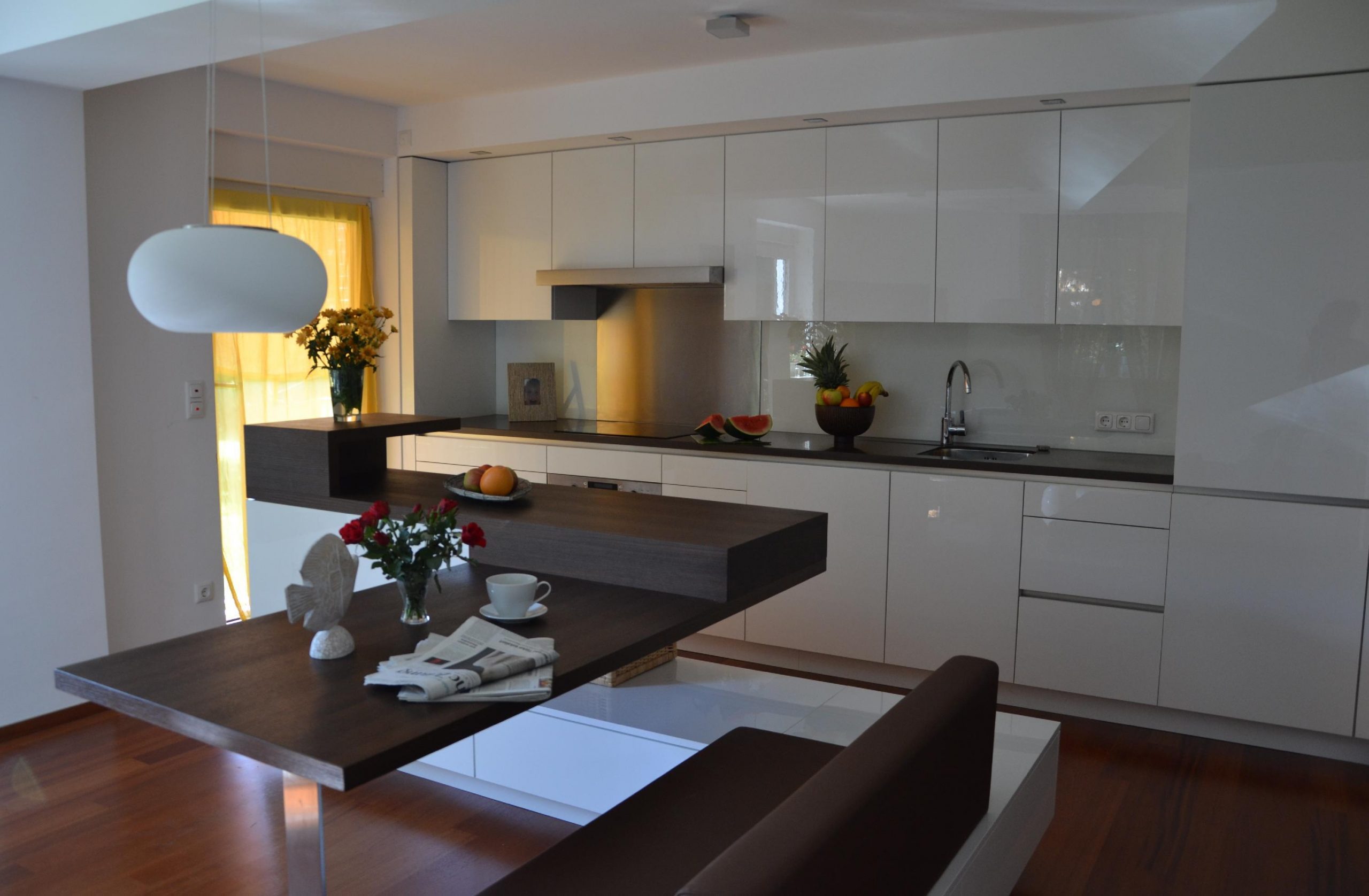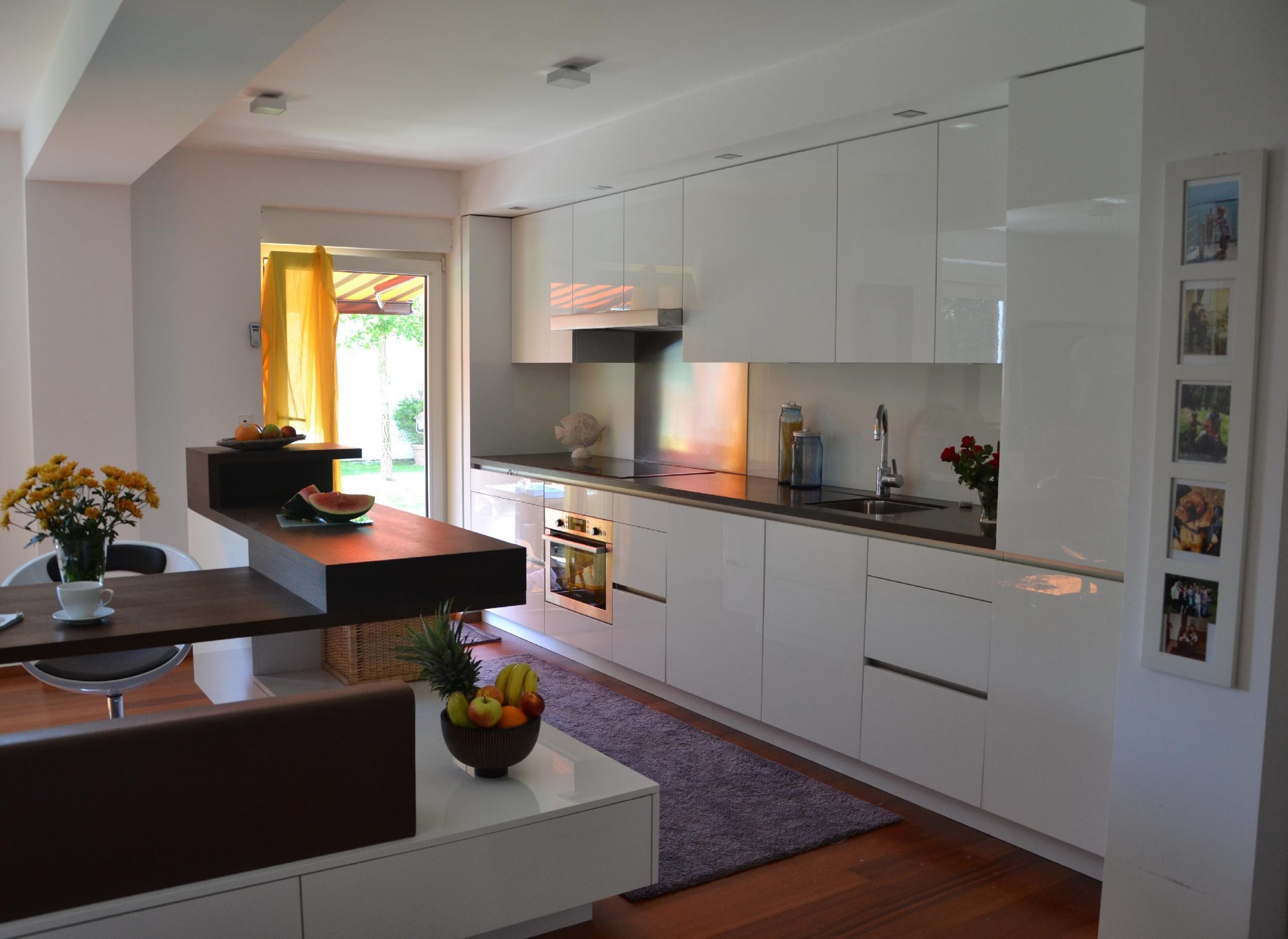 • Hochwertige, moderne Einbauküche voll ausgestattet (Herd, Ofen, Spülmaschine, Kaffeemaschine, Geschirr, Gläser, Töpfe, Pfannen). Großer, integrierter Kühlschrank (Kühl- / Gefrierkombi). Küchenfenster vorhanden. Ein großer, maßangefertigter Wohn/Essecke mit Platz für 4 Personen.