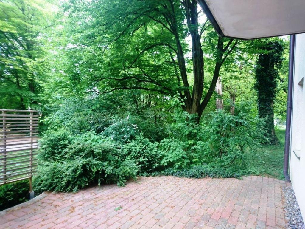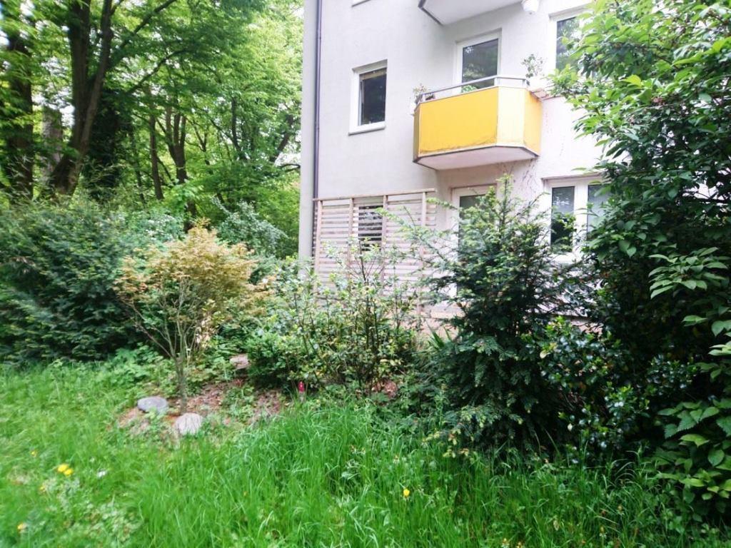 Zur Wohnung gehören eine Loggia und eine 28 qm große Terrasse, mit Natursteinen gepflastert und bepflanzt. Beides mit Blick ins Grüne. -