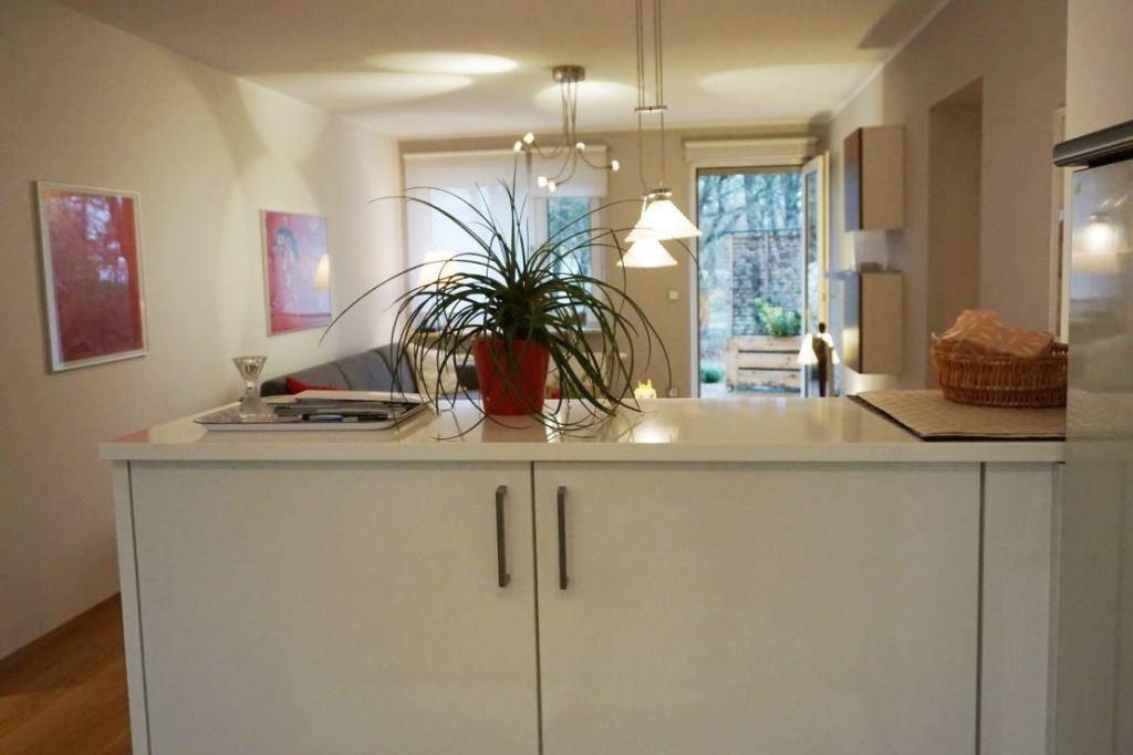 Einbauküche: vollständig eingerichtet (Geschirr, Gläser, Töpfe usw.); Kühl- Gefrierschrank (Siemens), Backofen mit Cerankochfeld (Miele), Dunstabzug, Spülmaschine, Mikrowelle, Kaffeemaschine, Wasserkocher. u.a.