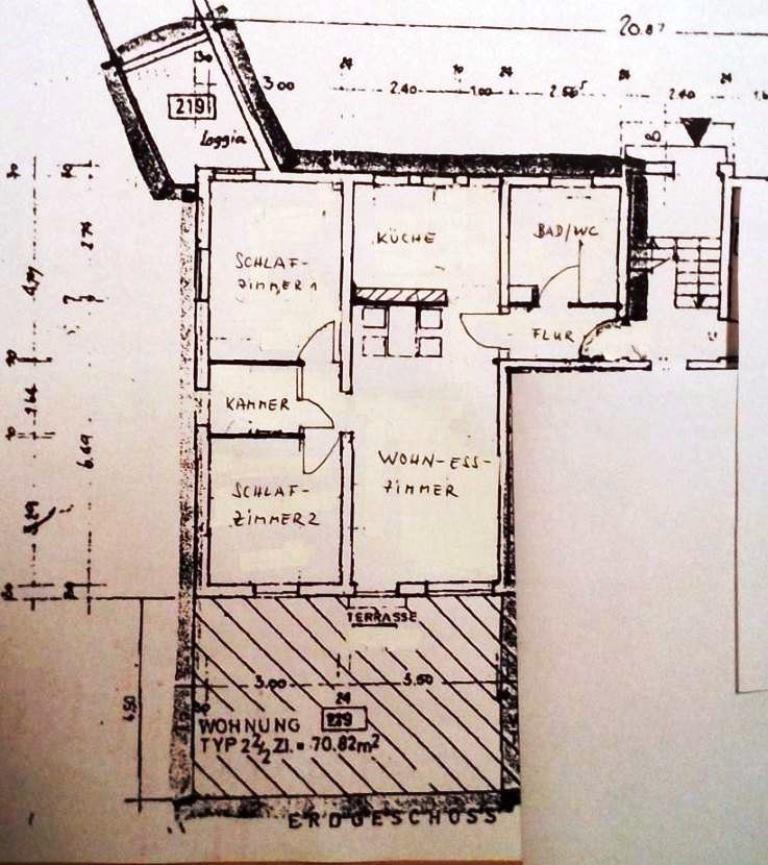Die Wohnung befindet sich im EG einer Wohnanlage mit EG + 3 Etagen. Alle Häuser sind wärmegedämmt, mit Isolierglasfenstern ausgestattet und werden laufend renoviert. Die Außenanlagen sind gepflegt, die meisten Bewohner sind Eigentümer ihrer Wohnungen. Die Wohnanlage steht unter Ensembelschutz.