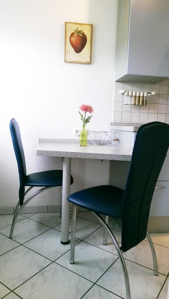 Küche: separat, voll ausgestattet und mit Fenster, Herd, Backofen, Kühlschrank mit Gefrierfach, Spülmaschine, Toaster, Kaffeemaschine, Wasserkocher, Mikrowelle, Essplatz für zwei Personen.
