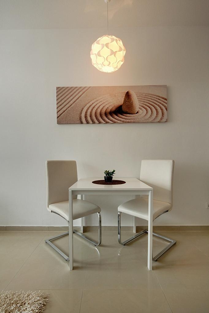 Möblierung: hochwertig und neu, moderner Stil. Grosser Doppelbett mit guten Matratzen auch trennbar in zwei Einzelbetten 2,10 x 1,00 m, Sofa mit Couchtisch, kleiner Arbeitstisch, Esstisch mit Stühlen, großer Kleiderschrank.